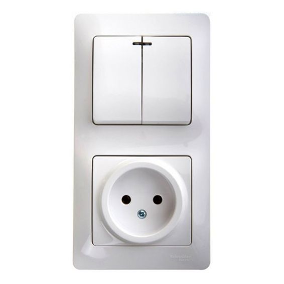 Вы можете купить товар Блок: выключатель 2-клавишный и розетка Schneider Electric GLOSSA, скрытый монтаж, белый с доставкой.